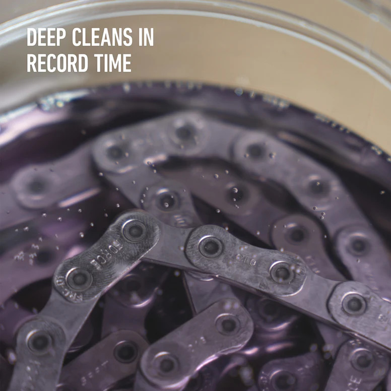 Díky svému biologicky odbouratelnému složení je šetrný ke všem povrchům a komponentům. Funguje rychle, bez nutnosti drhnutí, a ještě lépe v ultrazvukové čističce. Poradí si i s tovární vazelínou na nových řetězech a připraví každý řetěz na maximální přilnavost vosku.