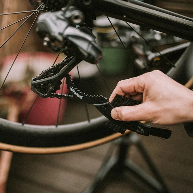 Multifunkční kartáč Dynamic Claw Brush je nepostradatelný pomocník pro důkladné čištění pohonu kola – od kazety a řetězu až po přehazovačku a kladky, a to i v těžko dostupných místech.